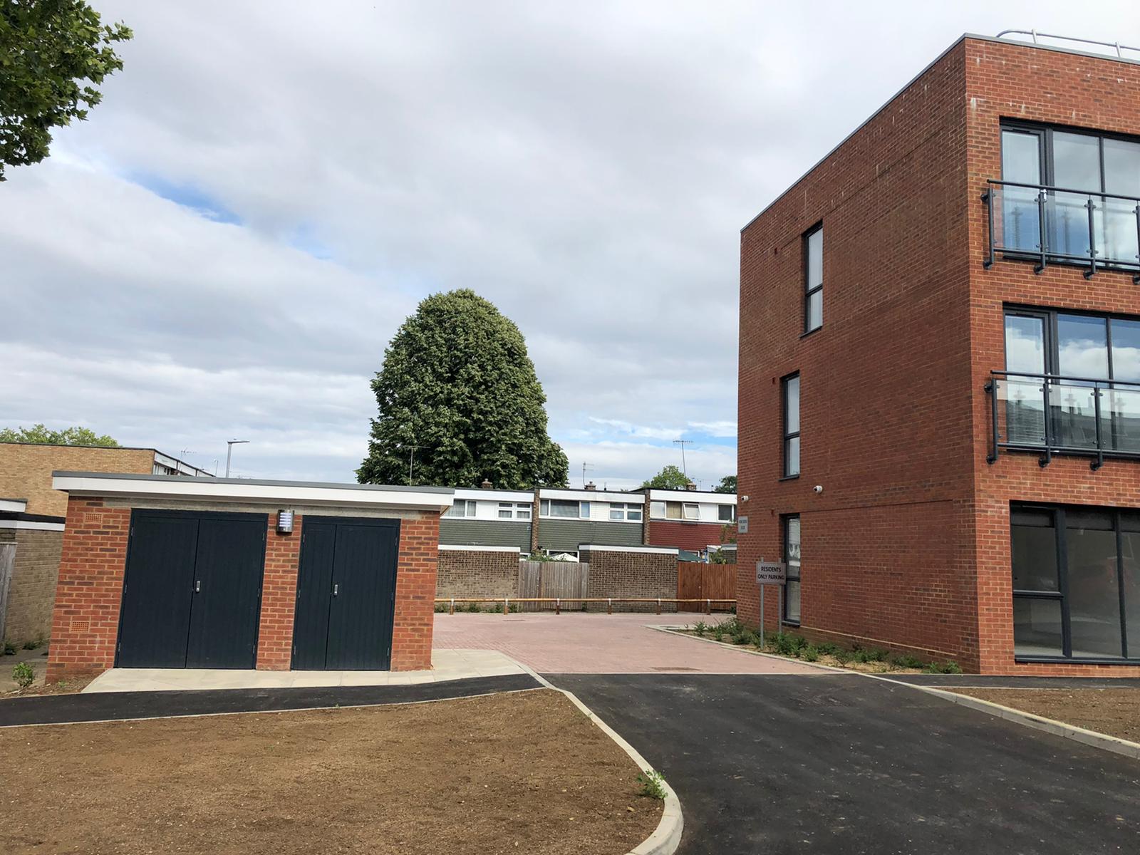 FSG was appointed as Principal Contractor to design and construct twelve new temporary accommodation flats across two garage sites in Hemel Hempstead – Northend and Westerdale. The scheme comprised ten two-bedroom and two one-bedroom flats, supporting local residents in need of short-term housing. The works also included the demolition and safe removal of existing garages containing asbestos roofs prior to construction.