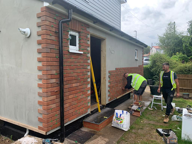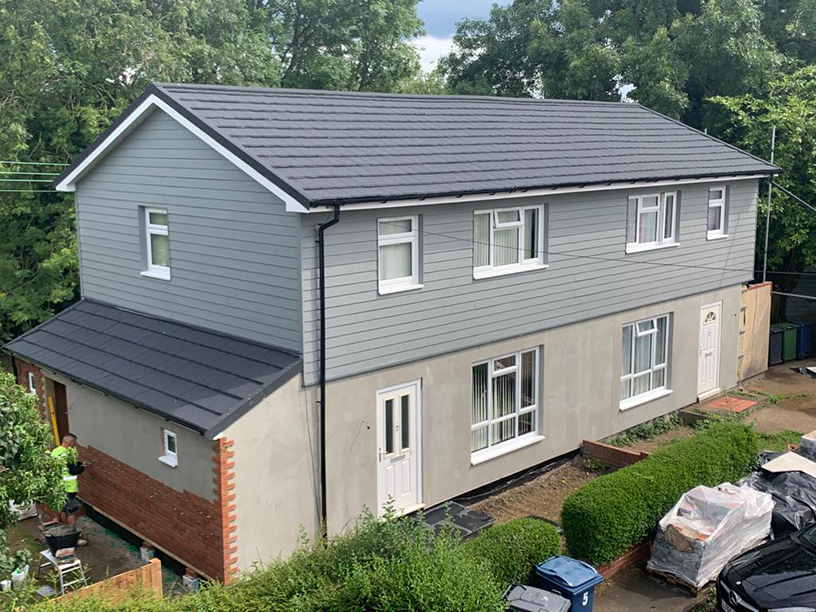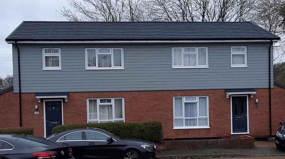 - Cladding to the first-floor level of the home, with a render brick effect at a low level