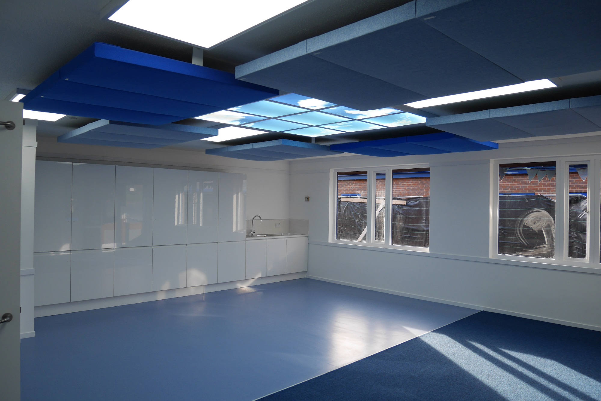 - Installation of acoustic ceiling boards with LED Sky panels to create calming sensory environments.