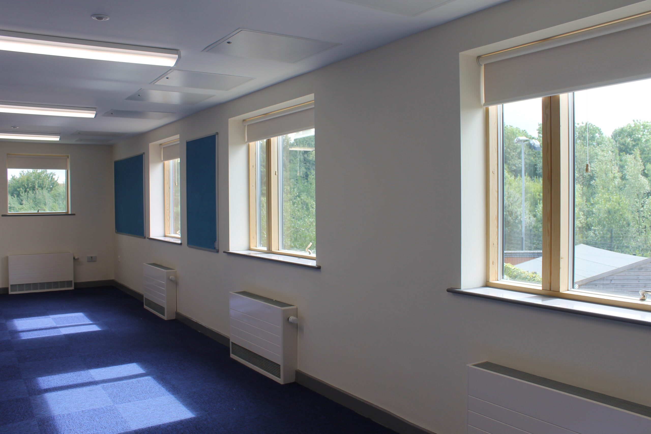 The completed areas were finished to a high standard, providing a durable and modern learning environment. Finishes included sensor-controlled LED lighting, custom blinds, durable flooring, and high-quality teaching aids such as pin and white boards. The kitchen areas were equipped with modern fittings, including taps with integrated water filtration systems to improve hygiene and usability.
